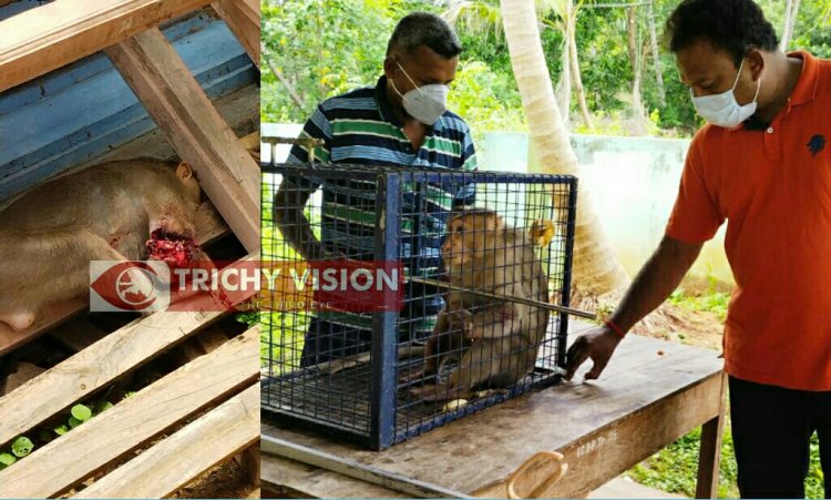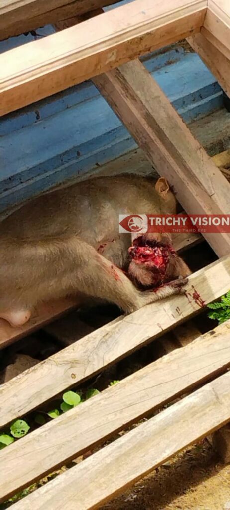 திருச்சி மாவட்டம் மண்ணச்சநல்லூர் தாலுக்கா திருவாசி ஊராட்சியில் மயில் குரங்கு உள்ளிட்டவைகள் ஏராளமாக உள்ளன. இந்நிலையில் திருவாசி பகுதியில் குரங்கு ஒன்றின் வலது முன்னங்கால் துண்டிக்கப்பட்ட நிலையில் கிடந்துள்ளது.