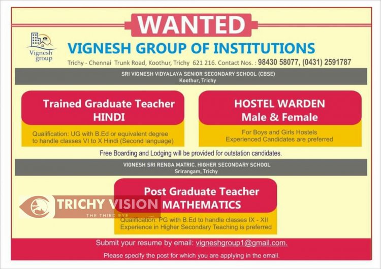 திருச்சியில் Vignesh Group of Institutions வேலை வாய்ப்புகள்
