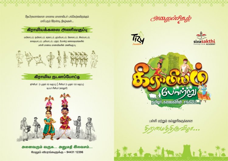 டி.ஆர்.ஒய் பவுண்டேஷன் மற்றும் சிவசக்தி அகாடமி இணைந்து நடத்தும் கிராமியம் போற்று எனும் நிகழ்ச்சி திருச்சி புத்தூர் பிஷப் ஹீபர் கல்லூரியில் நாளை 04-02-2023 சனிக்கிழமை நடைபெறவுள்ளது.
