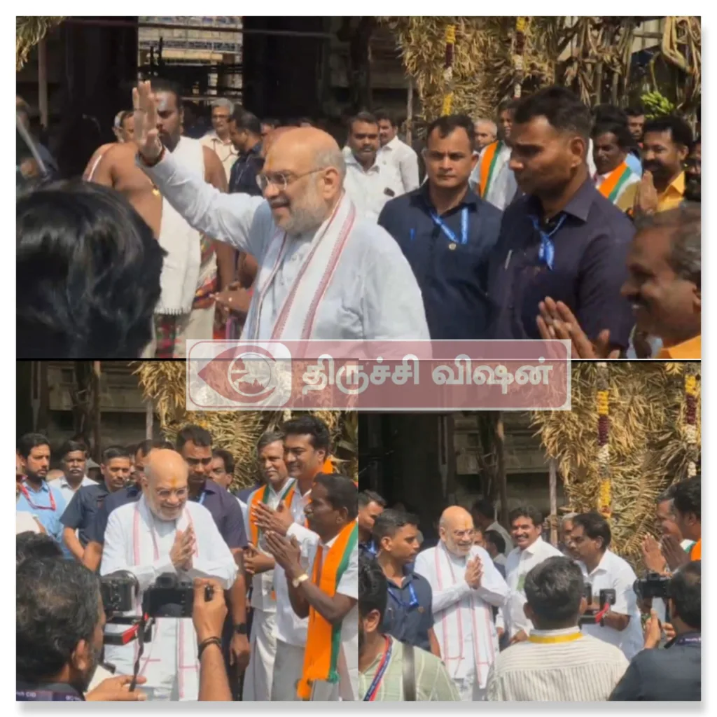மத்திய உள்துறை அமைச்சர் அமித்ஷா திருவானைக்காவல், ஸ்ரீரங்கம் கோவில்களில் சுவாமி தரிசனம் செய்தார். மத்திய உள்துறை அமைச்சர் அமித்ஷா, மத்திய அமைச்சர் பியூஷ் கோயல், அர்ஜுன் ராம் மேக்வால், முரளிதர் மோஹோல் இணை அமைச்சர் முருகன் ஆகியோருடன் திருச்சி வந்தார்.