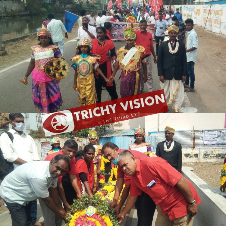 இதன் ஒருபகுதியாக திருச்சி தென்னூர் உழவர் சந்தையிலுள்ள கீழப்பழூர் சின்னச்சாமி, விராலிமலை சண்முகம் தியாகிகளின் நினைவிடத்தில் மக்கள் அதிகாரம் அமைப்பினர் தியாகிகள் நினைவிடத்தில் அஞ்சலி செலுத்தினர். முன்னதாக கப்பலோட்டிய தமிழன் வஉசி, சின்ன மருது – பெரிய மருது, வீரமங்கை வேலுநாச்சியார் வேடம் அணிந்து மக்கள் அதிகாரம் அமைப்பினர் ஊர்வலமாக வந்தனர்.