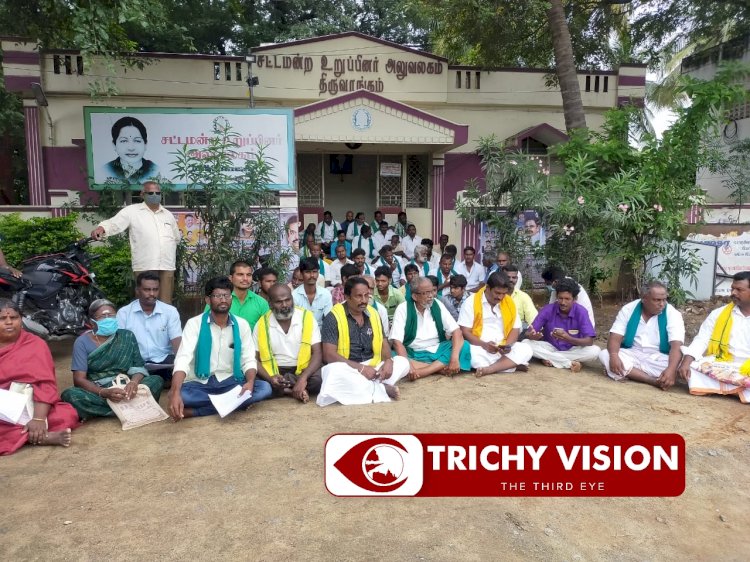 DNT(De-Notified Tribes) ஒரே சான்றிதழ் வழங்க வேண்டும், DNT மக்களை கணக்கெடுப்பு நடத்த வேண்டும் போன்ற கோரிக்கைகளை வலியுறுத்தி தேசிய தென்னிந்திய நதிகள் இணைப்பு விவசாயிகள் சங்கம் மாநில தலைவர் அய்யாக்கண்ணு தலைமையில் 100க்கும் மேற்பட்ட DNT ஒன்றிணைந்து திருச்சி ஸ்ரீரங்கம் மாம்பல சாலை பகுதியில் உள்ள (MLA Office) பிற்படுத்தப்பட்டோர் நலத்துறை அமைச்சர் வளர்மதி அலுவலகத்தில் காத்திருப்பு போராட்டம் நடத்தி வருகின்றனர்.