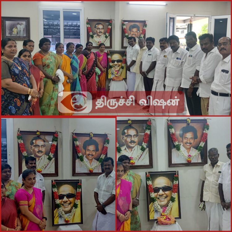 திருச்சி தெற்கு மாவட்ட அலுவலகத்தில் , திருச்சி மாநகராட்சி வார்டு தலைவர் தேர்தல் நடைபெற்றது, போட்டியின்றி ஒருமனதாக வார்டு குழு தலைவராக தேர்வு செய்யப்பட்ட மு. மதிவாணன், ஜெயா நிர்மலா மற்றும் நிர்வாக குழு உறுப்பினர்கள் திருச்சி தெற்கு மாவட்ட கழக பொறுப்பாளர் மாண்புமிகு பள்ளிக்கல்வித்துறை அமைச்சர் அன்பில் மகேஷ் பொய்யாமொழி அவர்களின் வழிகாட்டுதலின் படி முத்தமிழ் அறிஞர் கலைஞர் அவர்களின் திருவுருவ படத்திற்கு மாலை அணிவித்து மரியாதை செலுத்தினர்.