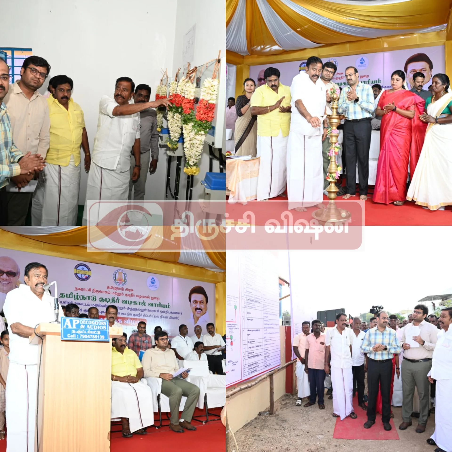 நகராட்சி நிர்வாகம் மற்றும் குடிநீர் வழங்க துறை சார்பில், தமிழ்நாடு குடிநீர் வடிகால் வாரியம் சார்பில் திருச்சி மணிகண்டம் மற்றும் அந்தநல்லூர் ஊராட்சி ஒன்றியங்களைச் சார்ந்த 174 ஊரக குடியிருப்புகளுக்கான ரூ199.22 கோடி திட்ட மதிப்பில் கூட்டு குடிநீர் திட்டம் (ஜல் ஜீவன் மிஷன்)துவக்க விழா நடைபெற்றது.