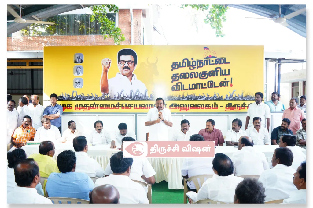 திருச்சி தில்லை நகரில் உள்ள கழக முதன்மைச் செயலாளர் அலுவலகத்தில் நடைபெற்ற மத்திய, வடக்கு மாவட்ட கழக செயற்குழு கூட்டத்தில் தமிழக முதல்வர் அவர்களின் வருகையை ஒட்டி சிறப்பான வரவேற்பு அளிப்பது குறித்து கழக முதன்மைச் செயலாளரும் நகராட்சி நிர்வாகத் துறை அமைச்சருமான கே என் நேரு சிறப்புரையாற்றினார் நிகழ்ச்சியில் மத்திய மாவட்ட செயலாளர வைரமணி வடக்கு மாவட்ட செயலாளர் எம் எல் ஏ காடுவெட்டி தியாகராஜன் எம்எல்ஏக்கள் ஸ்டாலின் குமார் கதிரவன் மாநகராட்சி மேயர் மு அன்பழகன் ஆனந்த் அவைத்தலைவர் அம்பிகாவதி மாவட்ட துணைச் செயலாளர் முத்து செல்வம் கருணாநிதி, மாவட்ட பொருளாளர் துரைராஜ் காஜா மல விஜய், கிராப்பட்டி செல்வம் டோல்கேட் சுப்பிரமணி உட்பட ஒன்றிய செயலாளர்கள் பகுதி செயலாளர்கள் வட்டச் செயலாளர்கள் தலைமை செயற்குழு பொதுக்குழு உறுப்பினர்கள் பலர் கலந்து கொண்டனர்.