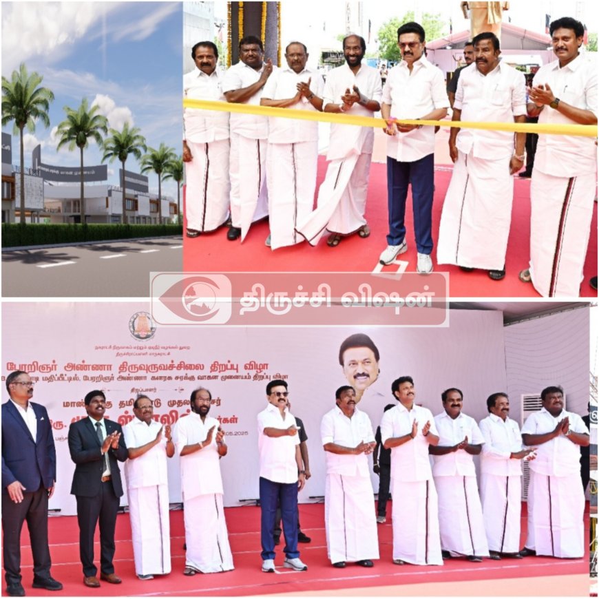 தந்தை பெரியார் பிறந்தது ஈரோடு என்றாலும் அவர் மாளிகை கட்டி வாழ்ந்தது இந்த திருச்சியில் தான்.கள்ளக்குடி போராட்டத்தில் கைதான கலைஞர் அவர்கள் திருச்சி சிறையில் தான் அடைக்கப்பட்டார். இது எல்லாவற்றையும் அடையாளமாக தான் இந்த பெரியார் சிலையும் அண்ணாசிலையும் கலைஞர் சிலையும் திருச்சியில் கம்பீரமாக அமைக்கப்பட்டிருக்கிறது. இதை திறந்து வைக்கின்ற பெருமை எனக்கு கிடைத்திருக்கின்றது என்று தமிழக முதல்வர் மு க ஸ்டாலின் அவர்கள் உரையாற்றினார்.