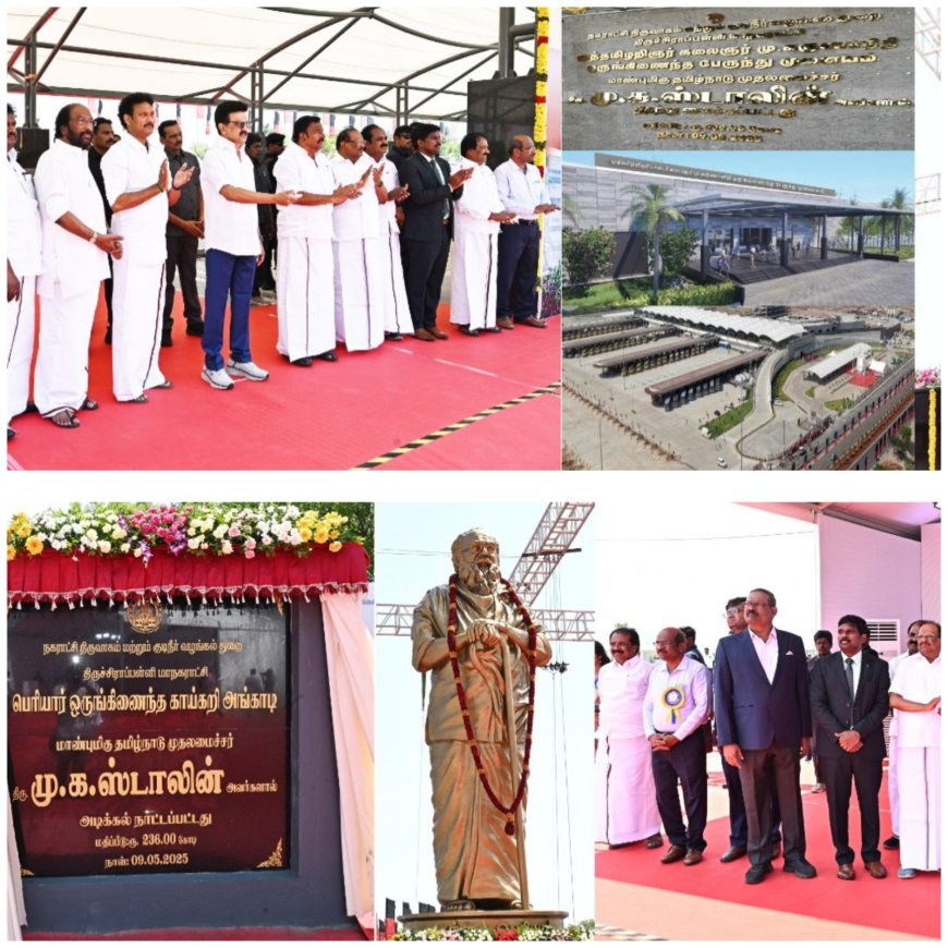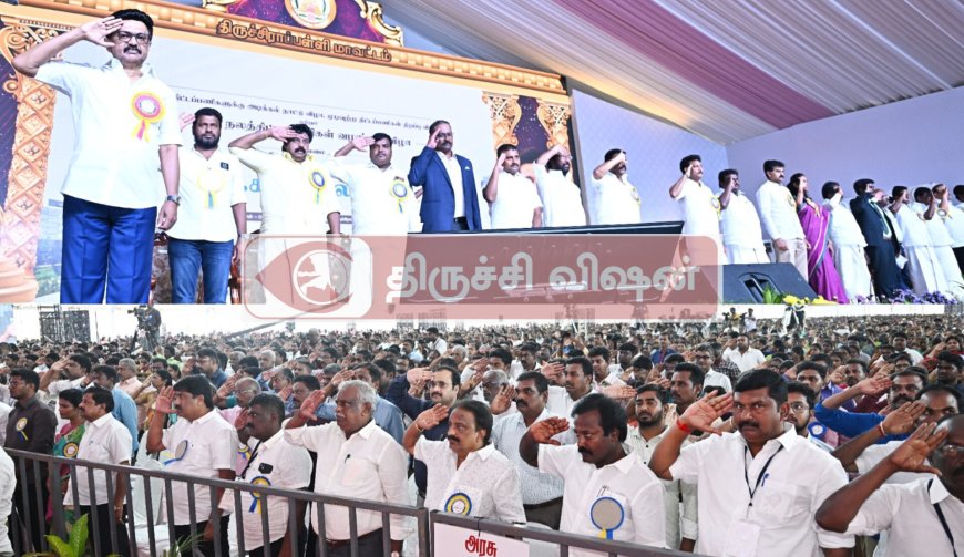 தமிழ்நாடு முதலமைச்சர் திரு மு.க ஸ்டாலின் அவர்கள் இன்று திருச்சிராப்பள்ளி மாவட்டத்தில் நடைபெற்ற அரசு விழாவில் முடிவுற்ற பணிகளை திறந்து வைத்தல் மற்றும் புதிய திட்டப் பணிகளுக்கு அடிக்கல் நாட்டுதல் மற்றும் நலத்திட்ட உதவிகளை வழங்கி அவர் உரையாற்றினார்.