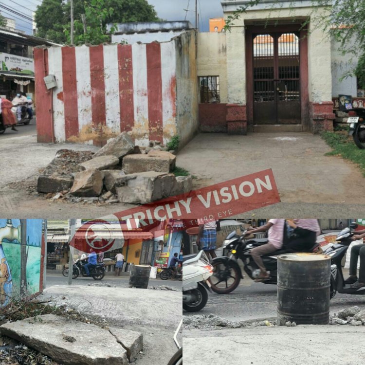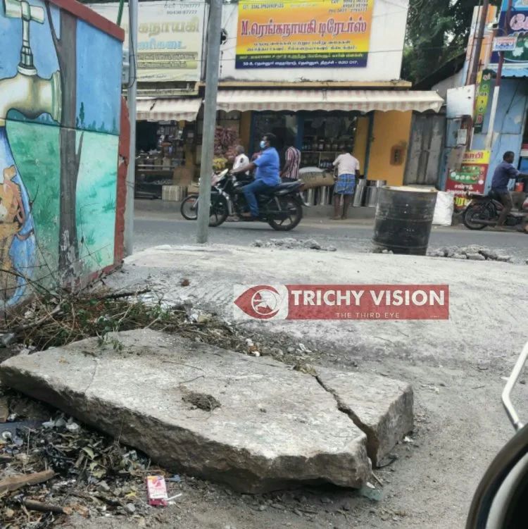திருச்சி வார்டு 50, கோ-அபிஷேகபுரம் கோட்டத்திற்கு உட்பட்ட தென்னுர் பிரதான சாலையில், பழைய கழிவு நீர் கால்வாய் அகற்றிய போது விஸ்வநாதபுரம் அருகே உள்ள கோவில் முன்பு குவித்து வைக்கப்பட்ட கற்கள் இன்னும் அகற்றப்படாமல் உள்ளது. இதனால் கோவிலுக்கு செல்வோர், சாலையில் வாகன ஓட்டிகள் பெரும் சிரமத்துக்கு ஆளாகின்றனர்.