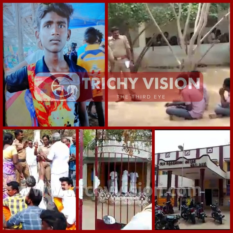 இரண்டு மாணவர்களை தொட்டியம் காவல்துறையினர் பிடித்து விசாரணை செய்து வருகின்றனர். இவர்களின் ஆசிரியர் ராஜேந்திரன் அப்பொழுது கேள்வி எழுந்த நிலையில் காவல்துறையினர் அவரிடம் விசாரணை மேற்கொண்டனர். அவர் அப்போது தேநீர் அருந்த சென்றதாக போலீசார் விசாரணையில் குறிப்பிட்டுள்ளார்.