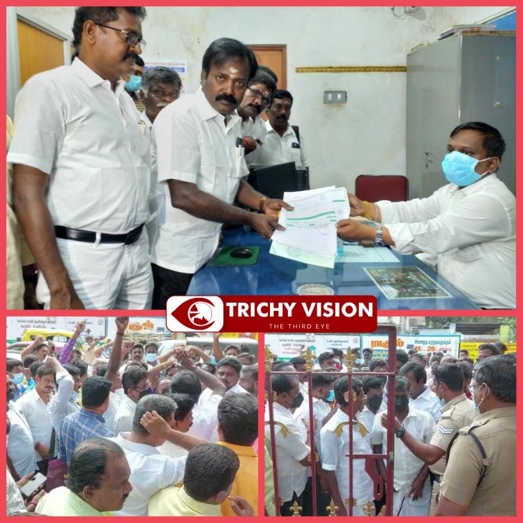 தமிழகத்தில் நகர்புற உள்ளாட்சித் தேர்தலையொட்டி கடந்த ஜனவரி 28ம்தேதிமுதல் வேட்புமனுதாக்கல் தொடங்கி நடைபெற்றுவருகிறது. திருச்சிராப்பள்ளி மாநகராட்சியில் 65வார்டுகளில் போட்டியிடும் அரசியல்கட்சியினர் மற்றும் சுயேட்சை வேட்பாளர்கள் தங்களது வேட்புமனுவை தாக்கல் செய்துவருகின்றனர்.
