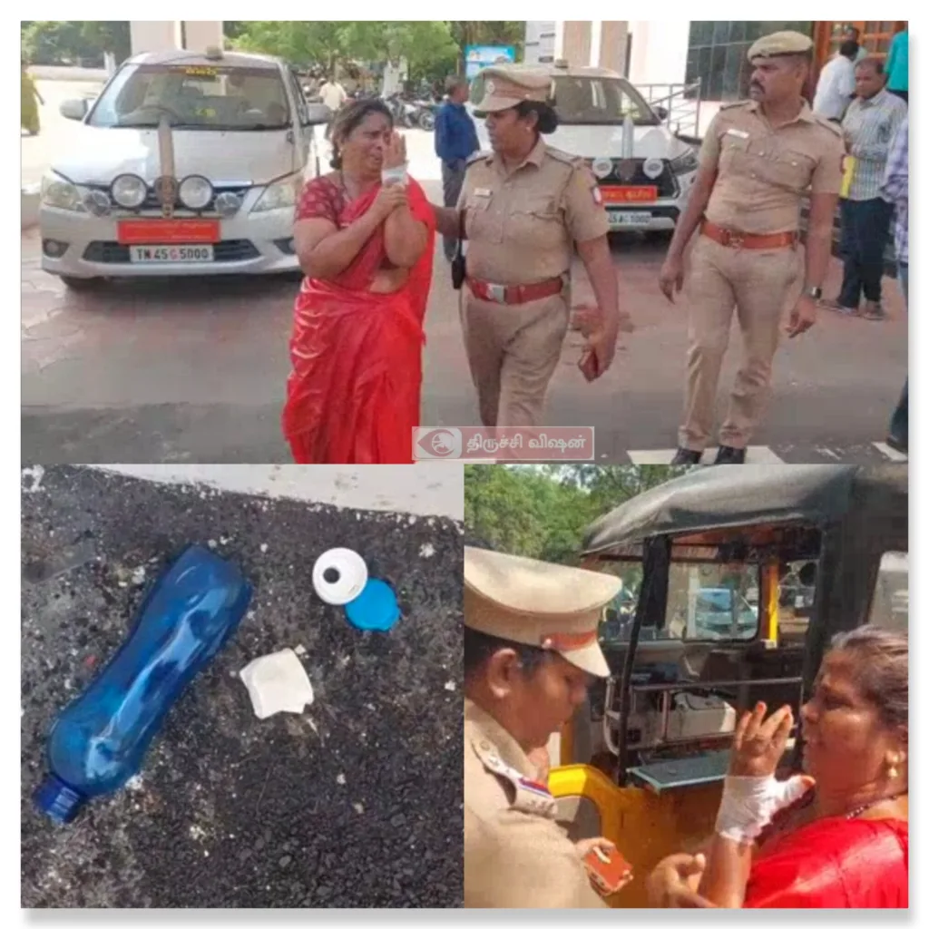துறையூரைச் சேர்ந்த சம்பூர்ணம் என்பவர் திருமணம் செய்து கொள்ளாமல் தனது தந்தையும் பெரியசாமி உடன் வசித்துவருகிறார். தனது பக்கத்து வீட்டில் வசிக்கும் நபர்கள் மது போதையில் தினசரி இரவில் ஆபாச வார்த்தைகள் பேசி கலாட்டா செய்வதை வாடிக்கையாகி வருவதால், அக்கம்பக்கத்தில் வசிக்கும் மக்கள் இரவில் சிரமம் அடைந்துவருகின்றனர்.இது தொடர்பாக காவல் நிலையத்தில் புகார் அளித்தபோது நடவடிக்கை எடுக்காததாலும், வழக்கை வாபஸ்பெற வலியுறுத்தி மது போதையில் இருந்த நபர்கள் கொலைமிரட்டல் விடுத்ததாலும் பாதிக்கப்பட்ட சம்பூரணம் திருச்சி மாவட்ட ஆட்சியர் அலுவலகத்தில் மண்ணெண்ணெய் ஊற்றி விபரீதத்தில் ஈடுபட முயன்ற சம்பவம் அதிர்ச்சியையும், பரபரப்பையும் ஏற்படுத்தியுள்ளது.