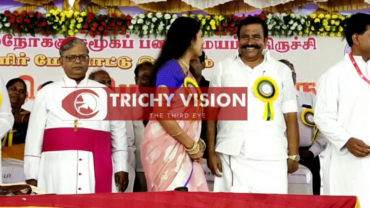 திருச்சி பல்நோக்கு சமூக பணி மையம், சுரபி மகளிர் மேம்பாட்டு இயக்கம் சார்பில் மகளிர் தின விழா, மஞ்சள் பை விழிப்புணர்வு விழா, மரக்கன்று வழங்கும் விழா, பணி ஓய்வு பணியாளர்கள் பாராட்டு விழா மற்றும் சேம நல நிதி வழங்கும் விழா இன்று ஆர்.சி பள்ளியில் நடைபெற்றது.
