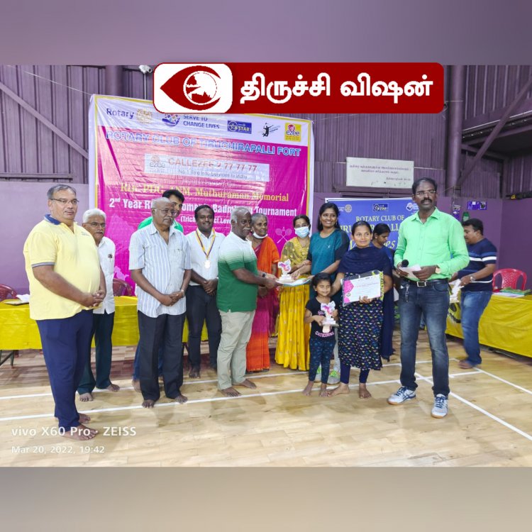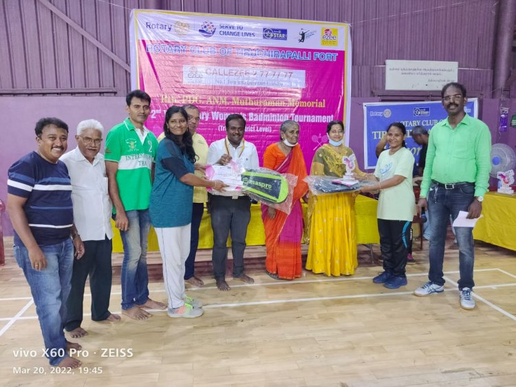மகளிர் தினத்தை முன்னிட்டு இல்லதரசிகளின் விளையாட்டு ஆர்வத்தை ஊக்கப்படுத்தும் விதத்தில் ரோட்டரி கிளப் ஆஃப் திருச்சிராப்பள்ளி கோட்டை சங்கம் & CALL EZEE 2777777 இணைந்து மகளிர்க்கான இரண்டாம் ஆண்டு பூப்பந்தாட்ட போட்டி 20.2.22-ம் தேதி Rehoboth Badminton Academy, வாசன் வேலியில், திருச்சி மாவட்ட அளவில் நடைபெற்றது.
