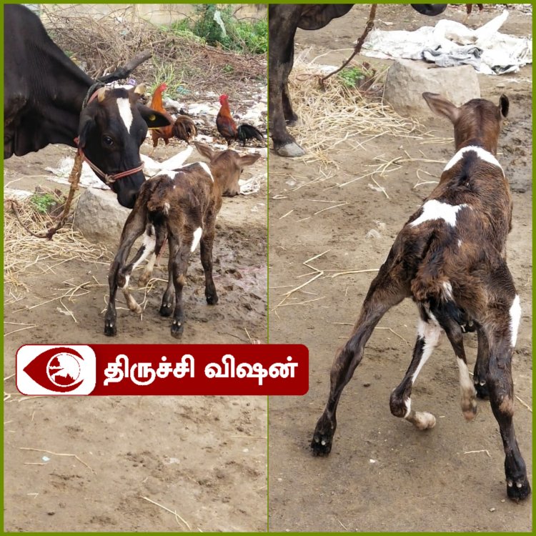 திருச்சி விமான நிலையம் அருகே திருவளர்ச்சிபட்டி கிராமம் உள்ளது. அந்த கிராமத்தை சேர்ந்தவர் பன்னீர். இவர் அந்தப் பகுதியில் விவசாயம் பார்த்து வருகிறார். மேலும் இவர் ஆடு, மாடுகளை வளர்த்து வருகிறார். இந்நிலையில் இவர் வளர்த்து வந்த பசுமாடு ஒன்று முதல் முறையாக கருத்தரித்து இருந்தது.