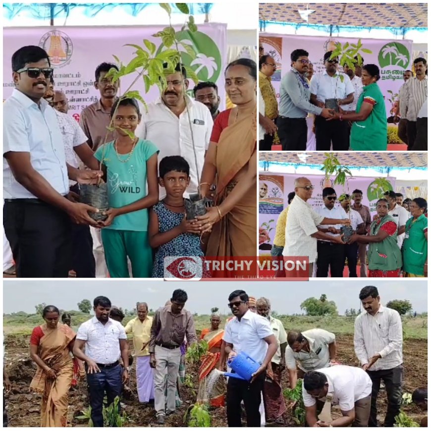 உலக சுற்றுச்சூழல் தினத்தை முன்னிட்டு திருச்சி மாவட்டம் சமயபுரம் அருகே உள்ள சனமங்கலத்தில் 50 லட்சம் மரக்கன்றுகள் வழங்கும் நிகழ்ச்சி இன்று நடைபெற்றது. இந்த நிகழ்ச்சியில் திருச்சி மாவட்ட ஆட்சித் தலைவர் பிரதீப் குமார் கலந்து கொண்டு தூய்மை பணியாளர்கள் மற்றும் பொதுமக்கள் குழந்தைகளுக்கு மரக்கன்றுகளை வழங்கி உரையாடினார்.
