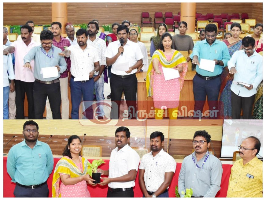 திருச்சிராப்பள்ளி மாவட்ட ஆட்சியரகத்தில் இன்று (05.06.2024) உலக சுற்றுச்சூழல் தினத்தை முன்னிட்டு மாவட்ட ஆட்சித்தலைவர் மா.பிரதீப் குமார், தலைமையில் நடைபெற்ற நிகழ்ச்சியில் அரசு அலுவலர்கள் உறுதிமொழியினை ஏற்றுக்கொண்டனர்.
