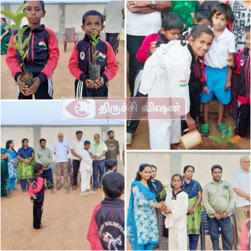 என்பதை வலியுறுத்தியும் இன்றைய இளைய தலைமுறையினருக்கு அது குறித்து விழிப்புணர்வு ஏற்படுத்தி அவர்கள் மரங்களை நட்டு வளர்க்க ஊக்கபடுத்தும் விதத்தில் டேக்வாண்டோ சோல்ஜர்ஸ் அகாடமியில் பயிற்சி பெரும் மாணவ மாணவிகள் மற்றும் அப்பகுதியில் உள்ள பொதுமக்களுக்கு கொய்யா மாதுளை நெல்லி உள்ளிட்ட பழ