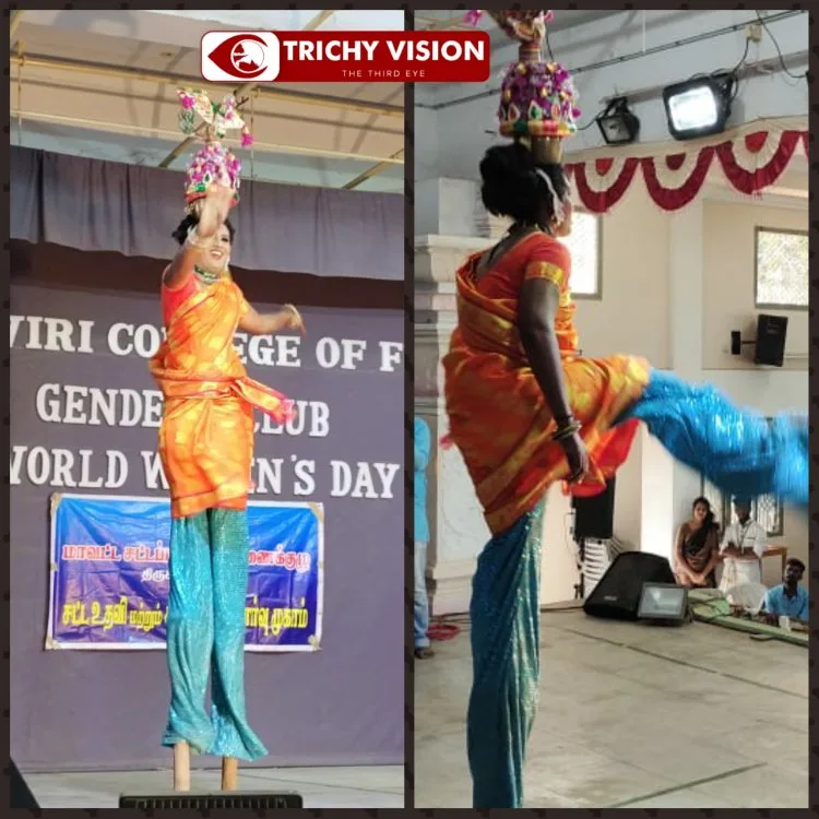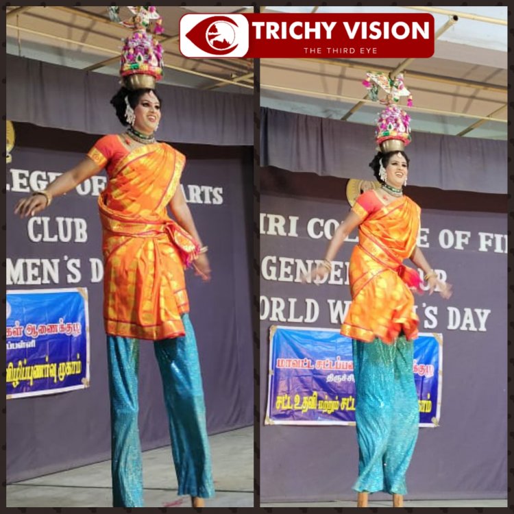 கலைக்காவிரி நுண்கலைக்கல்லூரி பாலின மன்றம் சார்பில் உலக மகளிர் தின கொண்டாட்டம் நேற்று நடைபெற்றது. நிகழ்விற்கு கல்லூரியின் இயக்குநர் அருள் பணி G.சாமிநாதன் தலைமை வகித்தார். முதல்வர் ப.நடராஜன் முன்னிலை வகித்தார். நிகழ்வில் சிறப்பு விருந்தினர்களாக மாவட்ட குற்றவியல் நீதித்துறை நடுவர் மன்ற நீதிபதி திரிவேணி, நாட்டுப்புறக் கலைஞர் திருநங்கை கே.வர்சா ஆகியோர் பங்கேற்றனர்.