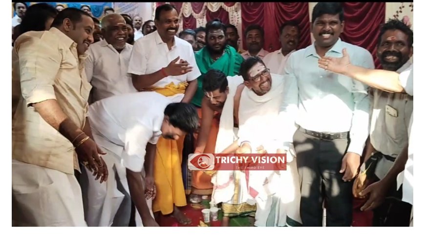 திருச்சி மாநகராட்சி நிர்வாகம் மற்றும் குடிநீர் வழங்கல் துறை சார்பில், மூலதன மானிய நிதி 2023-24 ன் கீழ் ரூபாய் 11.10 கோடி திட்ட மதிப்பீட்டில் ஸ்ரீரங்கத்தில் புதிய பேருந்து நிலையம் அமைக்கும் பணி துவக்க விழா நடந்தது நகராட்சி நிர்வாக துறை அமைச்சர் நேரு அடிக்கல் நாட்டி, பூமி பூஜை செய்து பணிகளை தொடங்கி வைத்தார்.