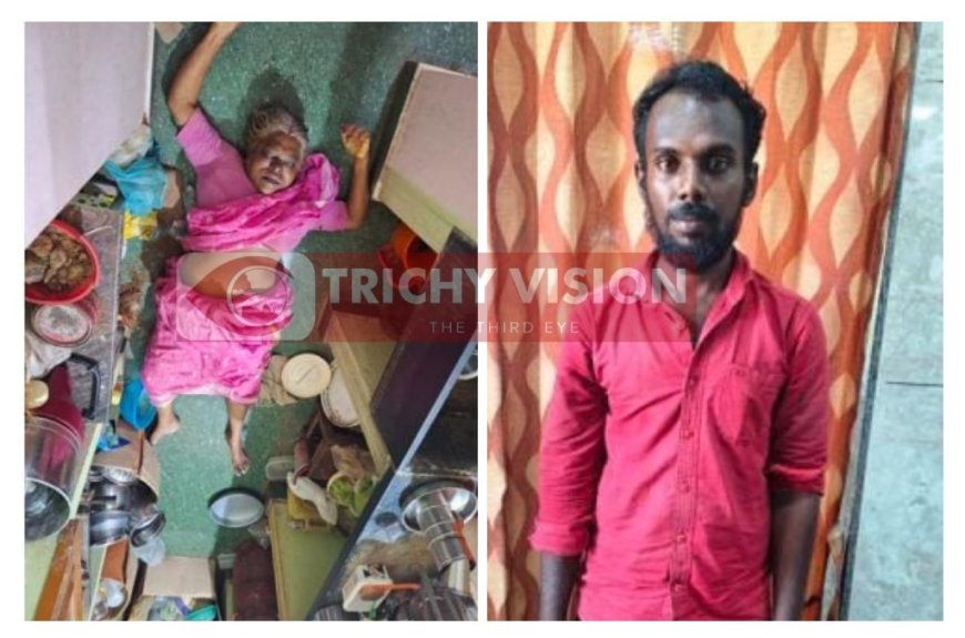 திருச்சி மாவட்டம், மணப்பாறை மஸ்தான் தெரு பகுதியைச் சேர்ந்தவர் நாகப்பன். இவரது மனைவி கல்யாணி (69). நாகப்பன் எலக்ட்ரிக்கல் கடை வைத்து நடத்தி வருகிறார். கடந்த 3 ம் தேதி கணவர் மற்றும் மகன் கடைக்குச் சென்றவிட்ட நிலையில் வீட்டில் மூதாட்டி மட்டும் தனியாக இருந்துள்ளார். மதியம் அவரது மகன் ராமநாதன் உணவு வாங்குவதற்கான வீட்டிற்கு சென்று பார்த்த போது வீட்டின் சமயலறையில் கல்யாணி கொலை செய்யப்பட்டு கிடந்தார்.