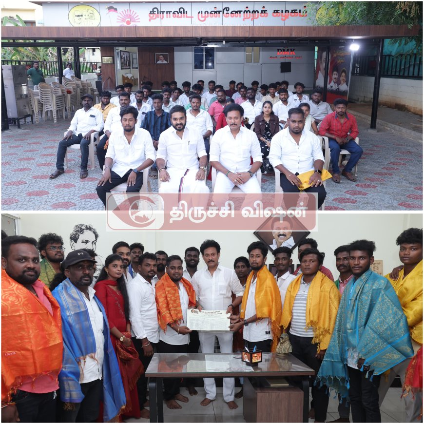 திருச்சி தெற்கு மாவட்டக் கழக அலுவலகத்தில் தெற்கு மாவட்டச் செயலாளர் அமைச்சர் அன்பில் மகேஸ் பொய்யாமொழி , திருவெறும்பூர் தொகுதிக்கு உட்பட்ட ஒன்றியங்கள் மற்றும் மாநகர பகுதிகளில்