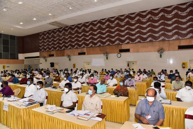 தமிழ்நாடு மாநில தேர்தல் ஆணையம் சார்பில் தமிழகத்தில் நகர்ப்புற உள்ளாட்சி தேர்தலையொட்டி தேர்தல் பயிற்சி மற்றும் ஆயத்த பணிகள் குறித்த தேர்தல் ஆணையர் பழனிக்குமார் தலைமையில் மண்டல அளவிலான ஆய்வுக்கூட்டம் திருச்சி கலையரங்கம் திருமண மண்டபத்தில் இன்று காலை தொடங்கி நடைபெற்று வருகிறது.